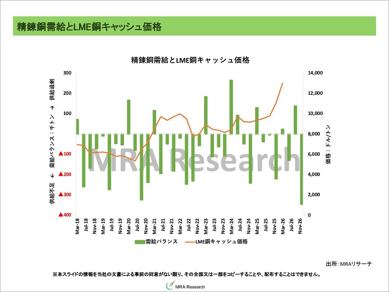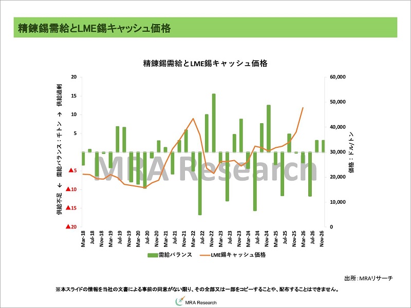 2026-01-26世界需給動向<非鉄金属> ファンダメンタルズ情報 銅・亜鉛・鉛・アルミ・ニッケル・錫の需給バランス推移グラフです。 過去のデータも含めて生産・需要データとも見直しされることがあります。 ※当データは定期的に更新されます。