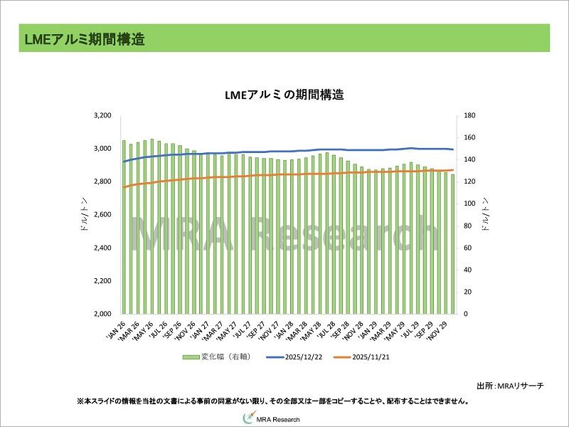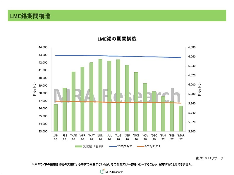 LME(銅・亜鉛・鉛・アルミ・ニッケル・錫)の直近期間構造です。
