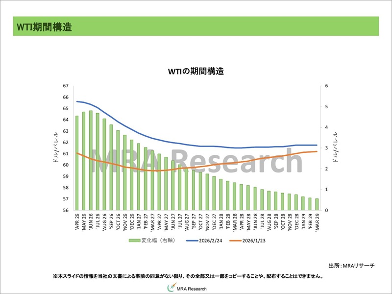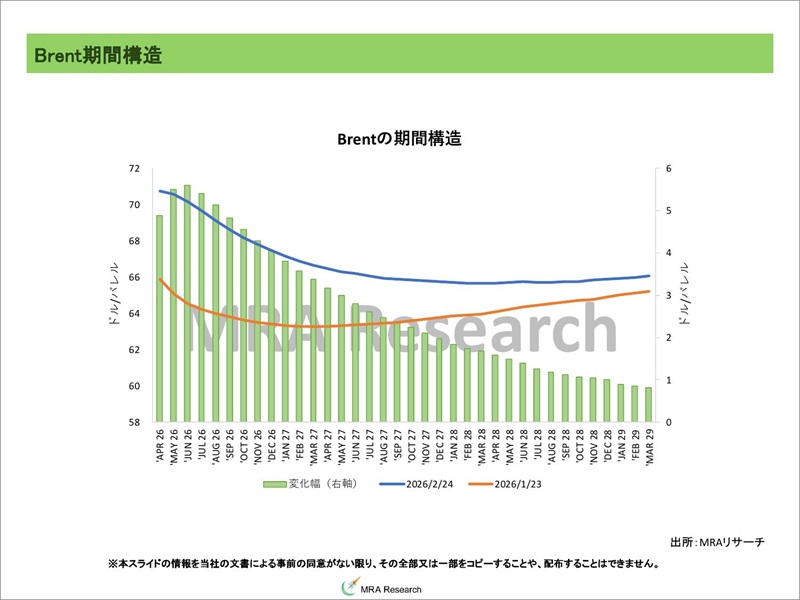 主要指標(WTI・Brent)の直近期間構造です。