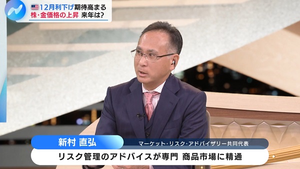 2025-11-25BSテレビ東京「NIKKEI NEWS NEXT」に新村が出演しました メディア出演 BSテレビ東京「NIKKEI NEWS NEXT」に新村が出演しました。 米12月利下げの行方 “景気指標”としての原油価格に注目 番組HPはこちらから。