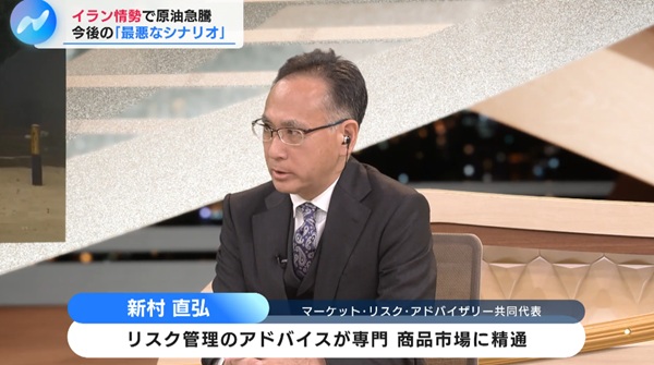 2026-03-04BSテレビ東京「NIKKEI NEWS NEXT」に新村が出演しました メディア出演 BSテレビ東京「NIKKEI NEWS NEXT」に新村が出演しました。 イラン情勢で株安・原油高 電気代いつ上昇?工場停止も? 番組HPはこちらから。